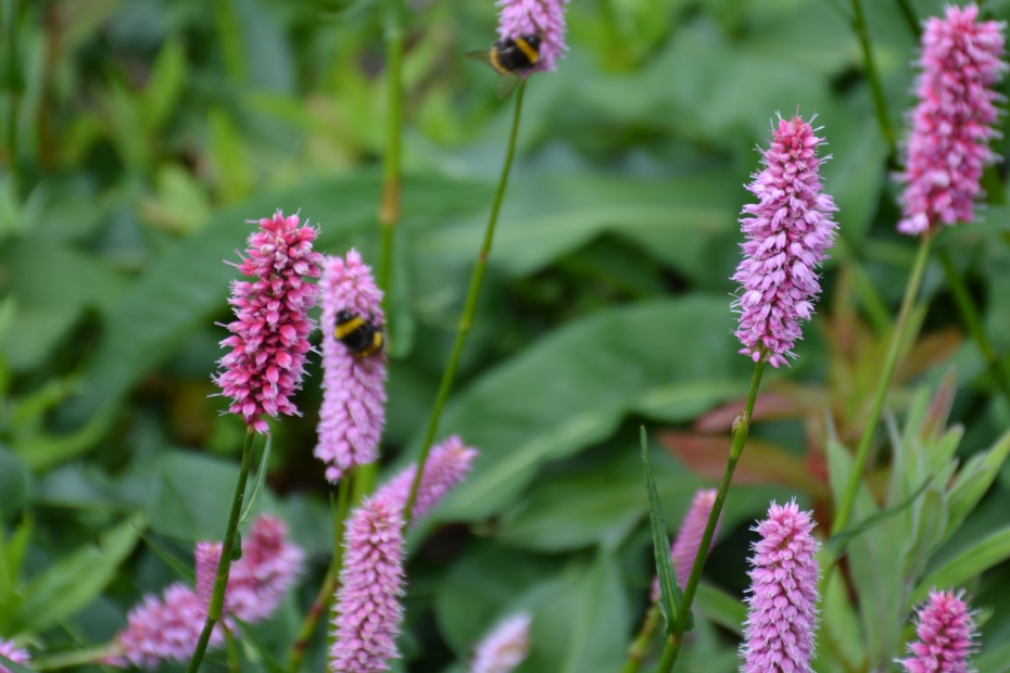 Persicaria bistorta 'Hohe Tatra'De echte inheemse adderwortel heet Persicaria bistorta, of, zoals onze oosterburen ook wel zeggen, Bistorta officinalis. Hij is niet dood te krijgen! Deze plant kan zowel vrij diep als wat meer aan de rand van de wadi staan. De soort kan zelfs flink uitgroeien. Vandaar deze 'Hohe Tatra', die net iets feller van kleur is en net zo aantrekkelijk voor insecten, maar rustiger groeit. Hij bloeit al vrij vroeg in de zomer met zijn buigzame aren op een ranke steel. Verschillende onderdelen van de plant zijn eetbaar. Het vrij grote blad bedekt de bodem helemaal, waardoor onkruid - of bijkruid, zo je wilt - geen kans krijgt.