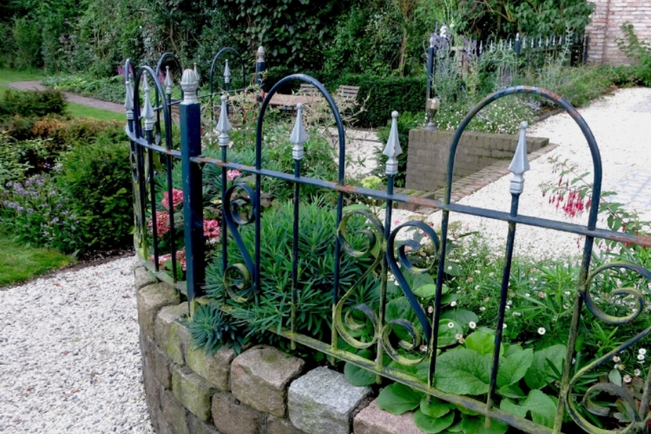 | | Het oude keermuurtje en hekwerk zijn behouden |