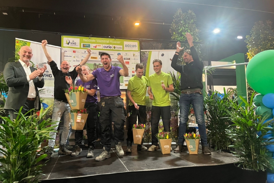 Na een urenlang juryberaad werd in het laatste beursuurtje de uitslag bekend van de Nationale Wedstrijd hovenier. Teams van de mbo-opleidingen van Aeres Velp, Curio, Scalda en Vonk streden om de titel. De wedstrijd werd georganiseerd door Koninklijke VHG in samenwerking met WorldSkills Netherlands.