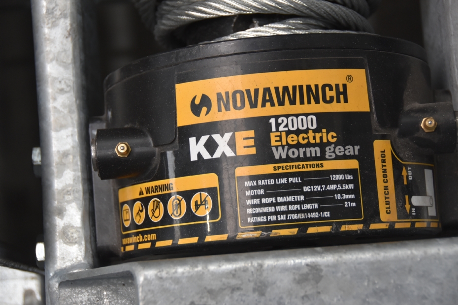 Na deze toelichting nemen we tijd om de aanhangwagen van het containerafzetsysteem te bekijken. In de werkplaats staat een nieuw uit te leveren exemplaar. Dat is bestemd voor het transporteren van de allergrootste containers. Zowel het frame van het onderstel als de slede bestaat uit thermisch verzinkt stalen materiaal. 'Sterk, maar zo licht mogelijk en de kinderziekten zijn er nu uit', aldus Krikkink. 'Ten opzichte van onze eerste exemplaren hebben we de lier verzwaard. Het geheel hebben we optisch verfraaid, onder meer door gebruik te maken van aluminium traanplaat. Daarnaast rolt de slede waarop de container moet komen te staan nu over zware gelagerde rollen. Eerder gebeurde dat met staal op staal, maar we vonden de slijtage bij intensief gebruik te groot. De aanhangwagen staat overigens op verzwaarde banden, maat 225 x 55 x 12.'
