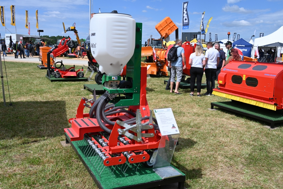 Wiedenmann werd vorig jaar overgenomen door private equity. Volgens de standbemanning brengt dat nieuwe energie in het bedrijf, maar ook scherpe keuzes. Zo is er een 'nieuwe' verticuteermachine, die eigenlijk gebaseerd is op IP van het Nederlandse Trilo. Echt nieuw is de TerraCore-beluchter (1,50 m breed) voor hollow coring tot 10 cm. Ook de AirDos - een combinatie van kriebeleg en doorzaaier. Het idee van de AirDos is als volgt: eerst verwijder je met de kriebeleg vilt en losse grasresten uit de toplaag. Daarna ga je nog een keer met de machine over het veld en breng je graszaad in. .