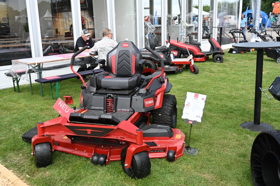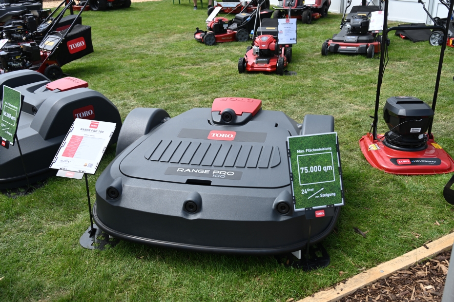 Toro, tot voor kort nauwelijks actief in robotmaaiers, had nu meerdere grote robotmaaiers op de stand, zoals de TurfPro 500S (maaibreedte 123 cm) en Range Pro 100 (95 cm). Allebei maaiers die voor grote oppervlaktes geschikt zijn. En ze claimen ook dat ze behoorlijk wat hoogteverschillen aankunnen. Ook toonden ze een nieuwe ZeroTurn Titan met een Kawasaki Diesel V-twin. Die kan maaien van 38 tot 114 millimeter maaihoogte met een werkbreedte van 1,5mtr.