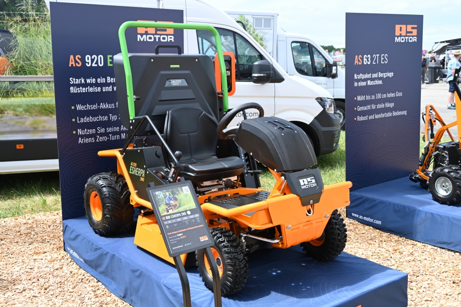 AS Motor presenteerde de AS 920 e-Sherpa, een zitmaaier op accu, speciaal voor hoog gras. De machine kost netto €16.000 en is uitgerust met verwisselbare accu's.