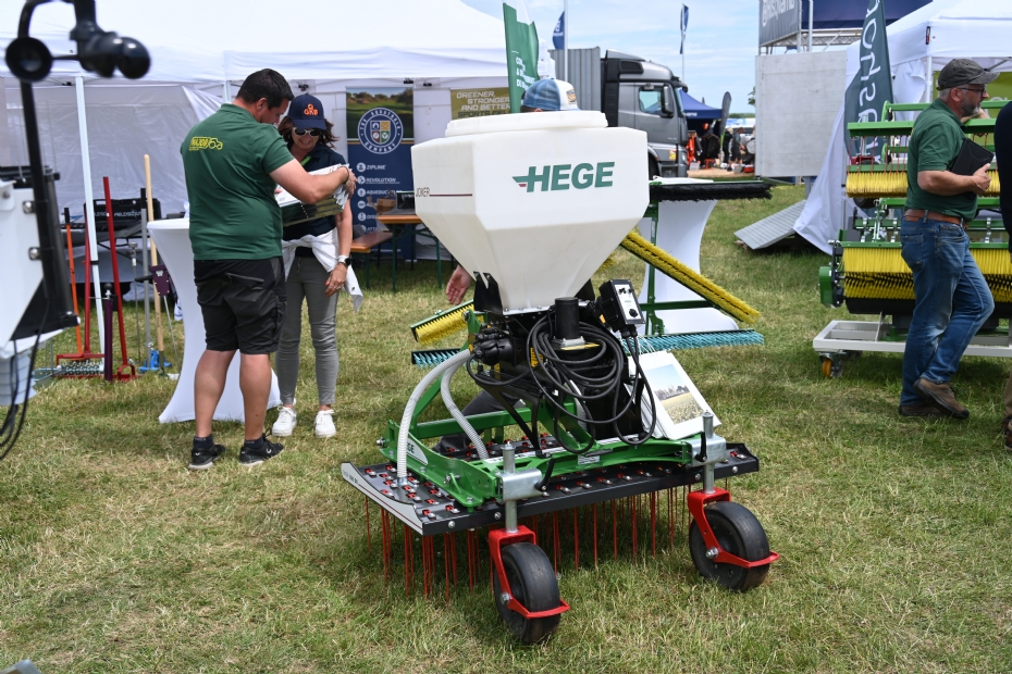 Hege, een Duits merk, toonde kriebeleggen met een werkbreedte van 2,4 meter en mogelijkheid tot doorzaaien. De constructie laat de kriebelelementen roteren in plaats van spoorsgewijs volgen. Prijsindicatie: €15.000 voor een kriebeleg met doorzaaioptie.