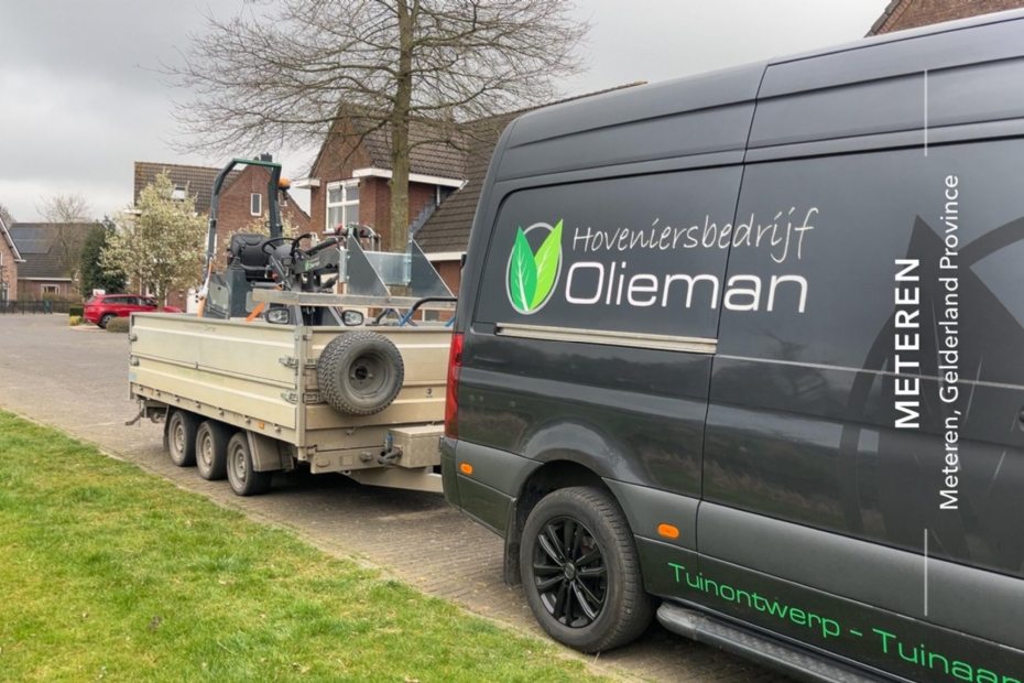 Hoveniersbedrijf Olieman De 26-jarig Jos Olieman werkt inmiddels drie jaar voor zichzelf, waarbij hij sinds zijn zestiende levensjaar ervaring opdeed bij twee werkgevers in het hoveniersvak. Hij kwam tot de conclusie dat ondernemen en zelf geld verdienen hem ook wel lag. Hij voert veel van de werkzaamheden uit met een flexibele schil van drie tot vier zzp'ers. Hoveniersbedrijf Olieman vinden we in het Gelderse Waardenburg. Olieman neemt qua tuinen bij voorkeur vooral aanleg- en onderhoudsklussen aan, waarbij ook bestratingswerk een rol speelt. En dat tot op een afstand van circa vijftien minuten rijden vanaf zijn vestiging.