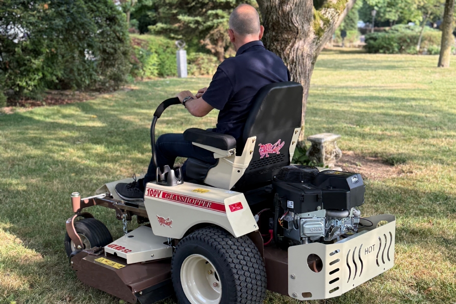 Hovenier Sjon Venhuizen kocht een nieuwe Grasshopper-zeroturnmaaier bij dealer IJzerman & Lankman en is daar bijzonder enthousiast over. 'Dit is de Mercedes onder de zitmaaiers!'