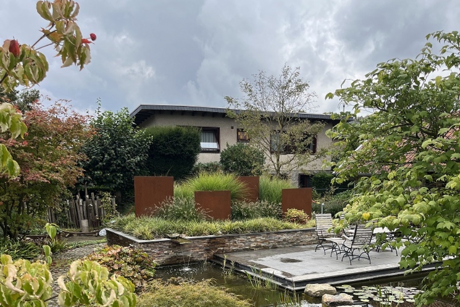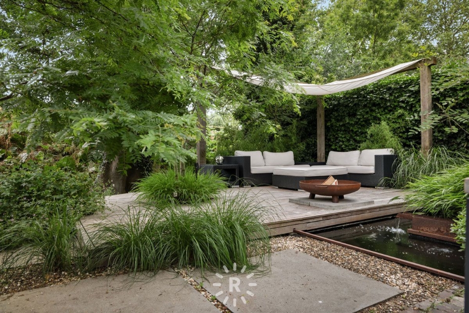 Minstens zo indrukwekkend vond de jury de door Ruinard Hoveniers aangelegde stadstuin aan het Arnhemse Sonsbeekpark. Op enkele rozenstruiken na bestaat de beplanting volledig uit nieuwe aanplant. 'We reserveren bewust budget voor grotere meerstammige bomen,' vertelt Frank Ruinard. 'Zo krijg je een tuin die na drie maanden al heel volwassen aanvoelt. In combinatie met zorgvuldig grondwerk betaalt die investering zich direct uit in kwaliteit. De kleurcontrasten van cortenstaal, het kleurenpatroon in de verharding en vergrijsd hout in combinatie met de groene beplanting, zorgen voor een originele stijl. Dat kost wel de nodige teken- en maatwerk, maar het maakt een tuin net wat anders dan anders.'