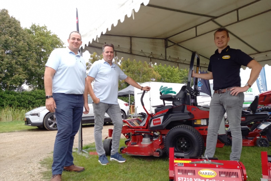 Heybroek, importeur van o.a. Toro en Maredo. Harold Morsink (Heybroek): 'Vandaag hebben we elektrische machines meegenomen, verschillende ZeroTurns van Toro. De kleine versies hebben losse batterijen die ook te gebruiken zijn voor het accugereedschap.' Maurice Reincke (Maredo): 'We hebben een multifunctionele werktuigdrager waar verschillende aanbouwdelen aan gekoppeld kunnen worden. Met één machine kan de hovenier uiteenlopende taken uitvoeren, zeker op het gebied van grasverzorging.' De heren hopen veel hoveniers aan te kunnen spreken.