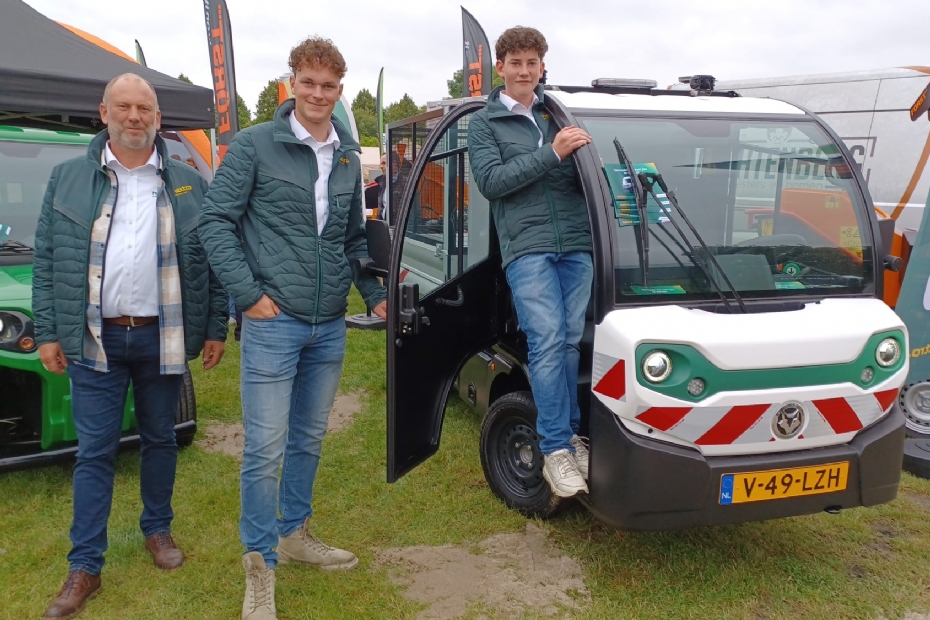 Arnold Rijkaart, Floris Harkes en Geert Nederveen van Nextro hebben de G2 en de G4 van Goupil meegebracht naar de Nationale Hoveniersdag. Voor veel hoveniers al een handig vervoermiddel als zij bijvoorbeeld in een binnenstad moeten werken. Ze zijn smal en volledig elektrisch, maar hebben tevens veel laadruimte.