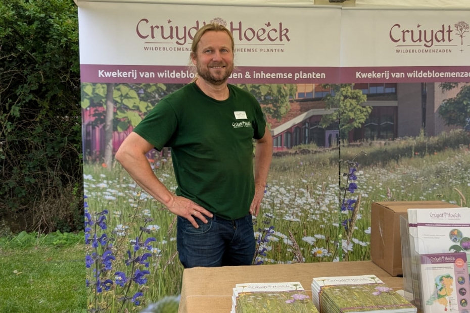 Jasper Helmantel van Cruydt-Hoeck zet zich met de kwekerij in voor meer biodiversiteit. De inzet werd recent beloond met de titel van 'greenfluencer' van het jaar. Later op de dag verzorgt Jasper Helmantel een praktische workshop over het aanleggen van een bloemenweide.
