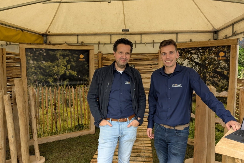 Van Vliet Duurzaamhout is gespecialiseerd in duurzame houtsoorten als kastanje, eiken, douglas, lariks, robinia en vuren. Deze soorten worden niet bewerkt door het bedrijf. Op de Nationale Hoveniersdag pakken Ernst-Jan Damen en Leon Blom uit met hun houten verlichtingen. Led-lampen worden verwerkt in houten palen, lantaarnpalen en wandverlichting. 'We zijn pioniers op dit gebied', stelt Damen.