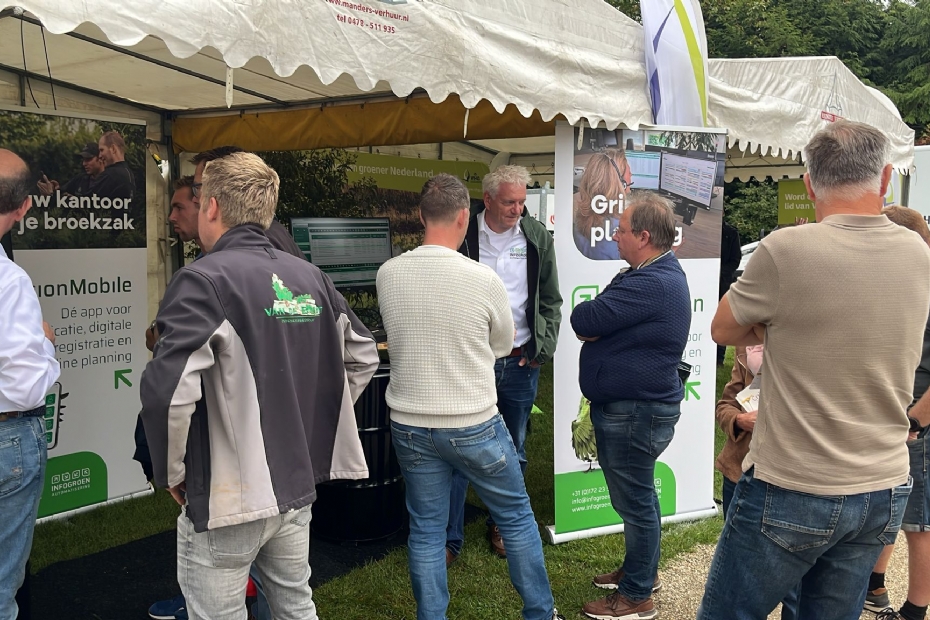 Drukte op de stand bij InfoGroen. Hier worden vandaag de eerst GroenVision 3.0 updates onthuld.