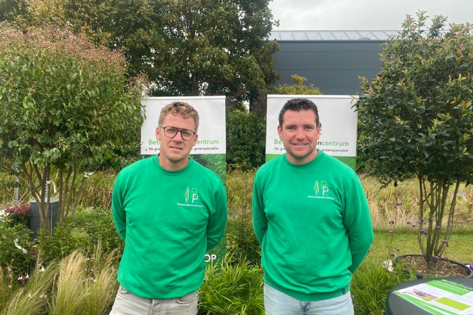 100 procent doelgericht vinden Peter Crum (L) en Otto van Setten (R) van Betuws Planten Centrum de Nationale Hoveniersdag. Bezoekers stoppen graag bij de flexibele leverancier zoals ze vaak genoemd worden. 'We horen vaak terug dat we snel en makkelijk zijn als leverancier,' vertelt Van Setten.
