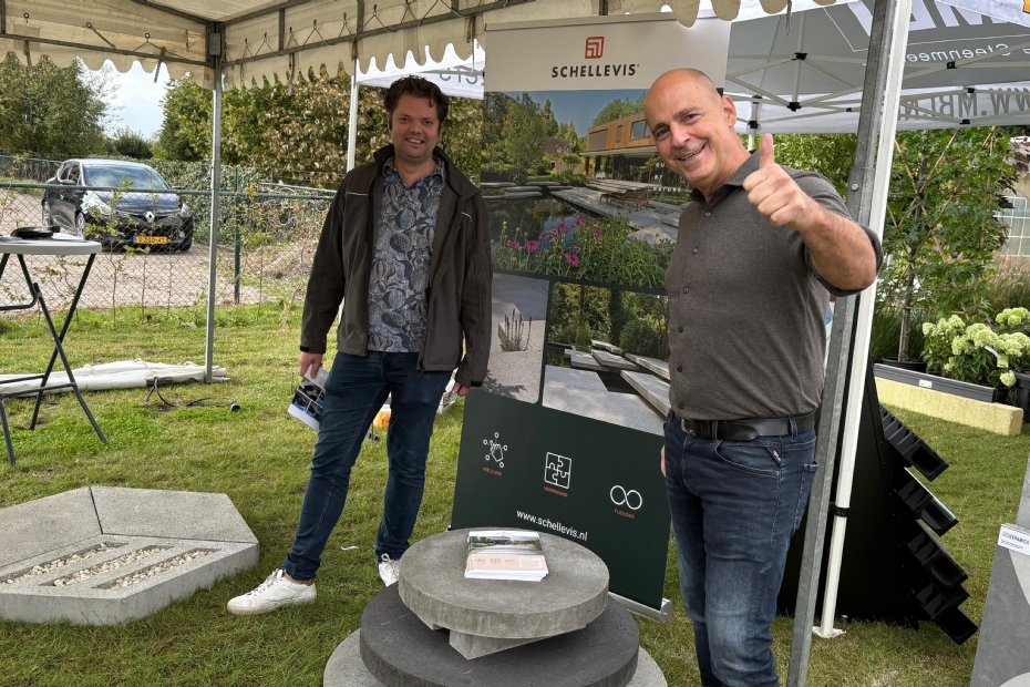 Schellevis staat ook op de Nationale Hoveniersdag. 'Nieuw is onze productrange waarin de waterpasseerbaarheid van water centraal staat. Onze nieuwe tegels presenteren we volgende week in Utrecht. We willen ons in de kijker spelen bij hoveniers en daar past dit event perfect bij,' zegt Frenk Capiteijns.