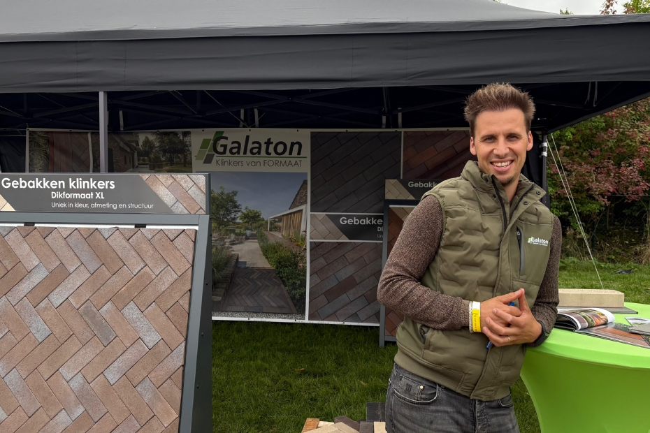 'Naamsbekendheid creëeren voor gebakken klinker van formaat is ons doel. Ze zijn uniek in kleur, afmeting en structuur. Net wat anders dan wat er standaard op de markt te verkrijgen is. We leveren exclusief assortiment onder het label Klinkers van Formaat' aldus Jaap Woestenburg van Galaton.
