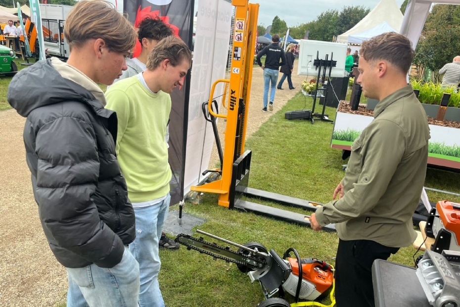 Op de stand van Stihl legt accountmanager Tommy Nagtegaal uit wat de nieuwste ontwikkelingen zijn op het gebied van accumachines. Aankomend jaar bestaat Stihl 100 jaar en komen er weer voldoende nieuwe producten aan.