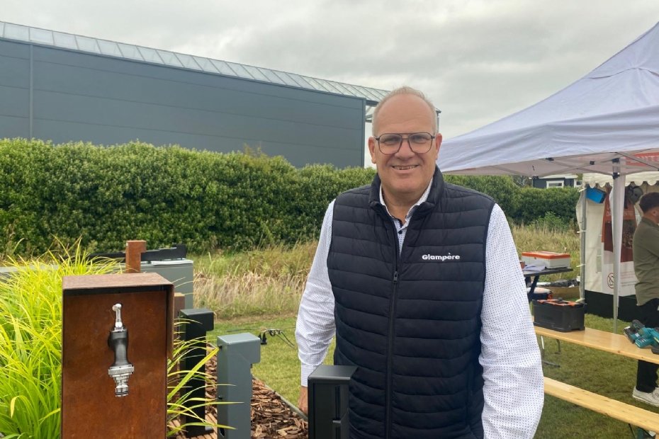 Hans van de Vossenberg van Glampère laat hun nieuwste servicepunt zien. Daarnaast bieden ze ook sinds een jaar of vijf tuinpaal stopcontacten aan.