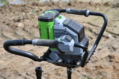Bij de stand van Stierman de Leeuw showt Tom Akkermans de nieuwe EGO grondboor PHA7400E op accu.