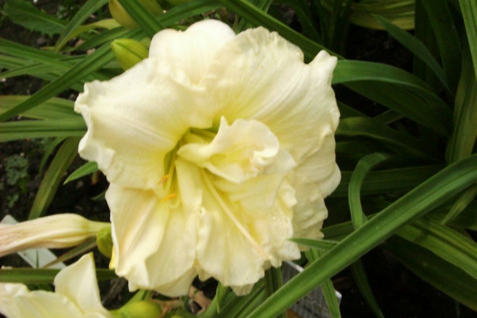 Hemerocallis groeit vanuit het hart met lang, smal, grasachtig blad