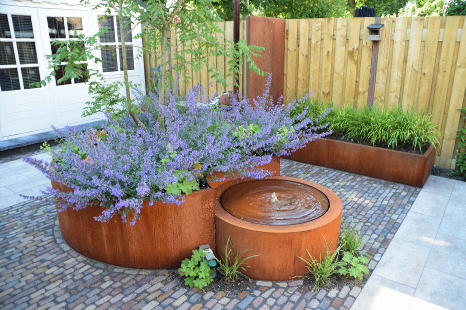 Mocking Hoveniers plaatst regelmatig cortenstalen plantenbakken in voor- en achtertuinen