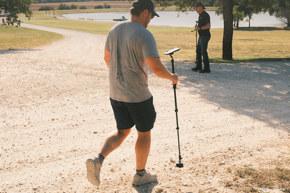 De Moasure 2 PRO meet en tekent gelijktijdig, ook op complexe of onregelmatige locaties. Deze tool legt x-, y- en z-gegevens vast terwijl je beweegt. Hiermee worden omtrek, oppervlakte, hoogteverschillen en volume berekend.