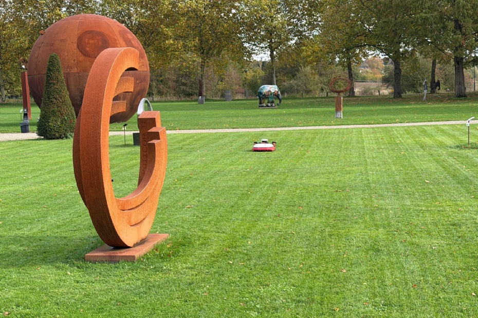 Jahach vervolgt: 'Hier draait op dit moment de KR234E, een RTK-robotmaaier die tot 16.000 m² aankan. De komende twee jaar worden er vijf extra robotmaaiers van dit kaliber aangeschaft (KR234E) en enkele kleinere, KR172E, voor terreinen tot 2.000 m², allemaal RTK-robotmaaiers.'