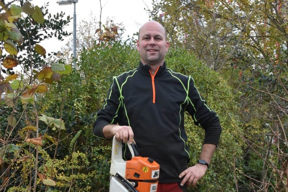 | | Boomverzorger Gerard van Hoof heeft een passie voor kettingzagen. |