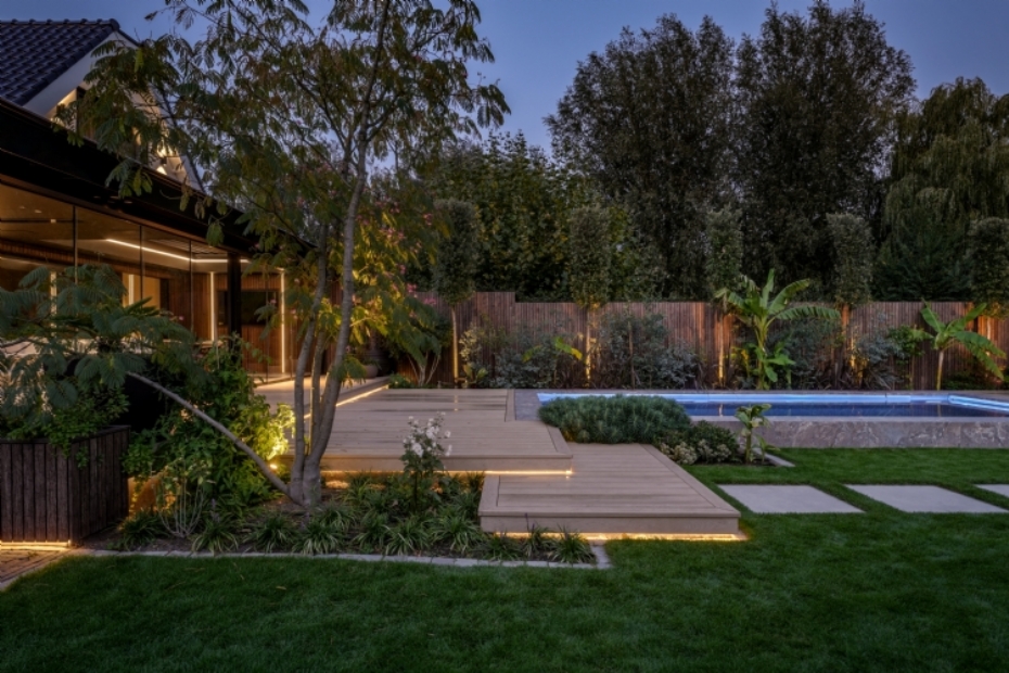 Subtiele luxe Awood liet het materiaal terugkomen in erfafscheiding, wandbekleding en verschillende zichtlijnen waardoor de tuin één sterk, doorlopend verhaal werd. Het zorgt voor diepte, ritme en een subtiele luxe die niet schreeuwt, maar aanwezig is in elke meter. Het resultaat is een tuin waarin de bewoners zich kunnen onderdompelen in comfort, omringd door materialen die tot in het kleinste detail kloppen.