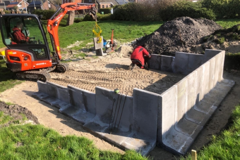 | | Aanleg verzonken terras met Tuinvisie beton l elementen |