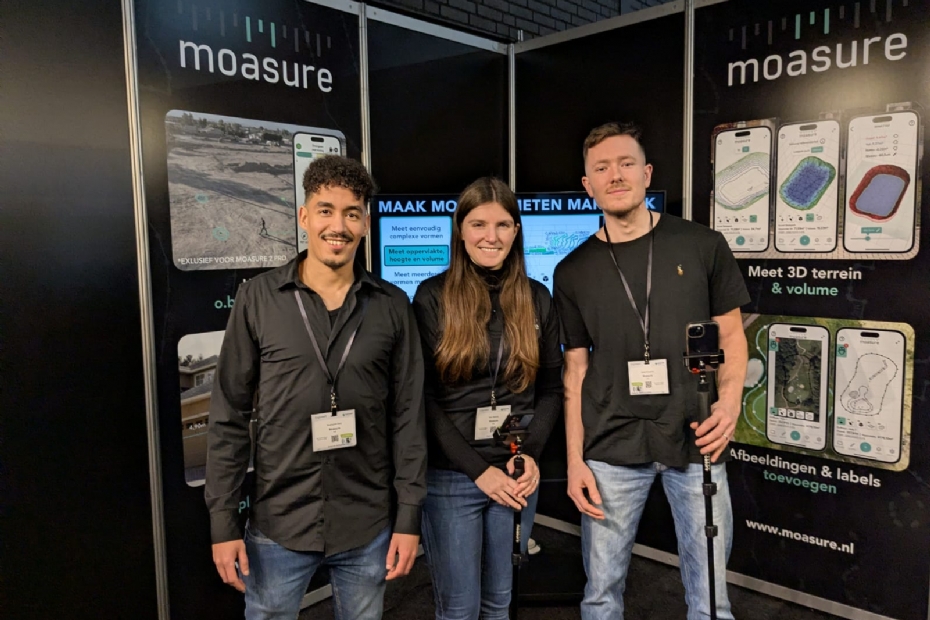 Het team van Moasure (o.a. Mustapha Himi en Sela Hendrix) staat op de beurs om klanten te begroeten. Influencer Joost Kloostra (uiterst rechts) is als ambassadeur van het merk actief. In zijn video's legt hij uit hoe de apparatuur van Moasure werkt. Je vindt zijn filmpjes op Instagram onder Joost in de Tuin.