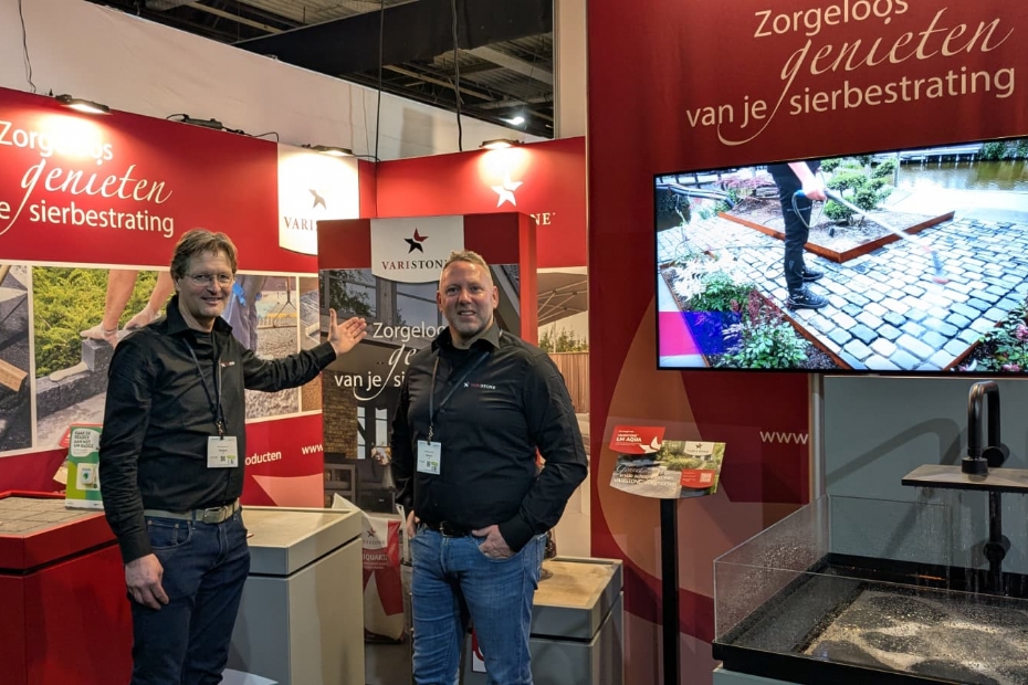 Bij Varistone staat o.a. Remy Ankersmit op de stand. Hij vertelt over hun landelijk dekkend netwerk van exclusieve dealers die ze persoonlijk scholen om perfect te adviseren over de mogelijkheden en toepassingen van Varistone.