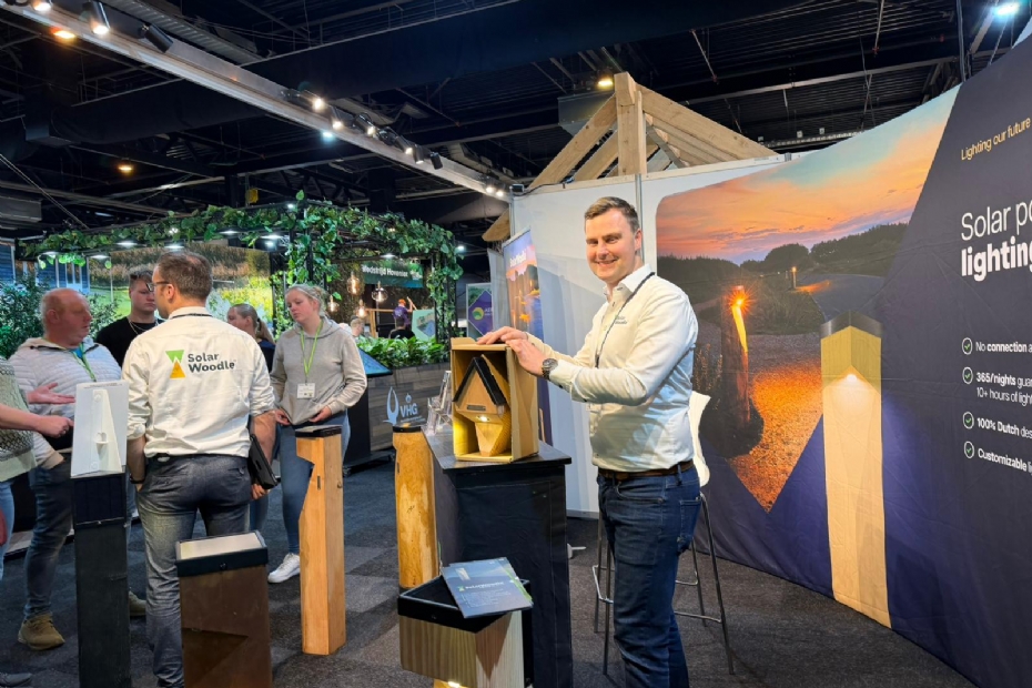 Levi De Groot van SolarWoodle heeft een assortiment van duurzame verlichting voor oriëntatie en lantaarns. Hun missie is om het zo makkelijk mogelijk te maken om recreatieparken en tuinen goed te verlichten. Alle producten worden zelf gemaakt. Allleen het zonnepaneel, dat glas bevat komt van derden.
