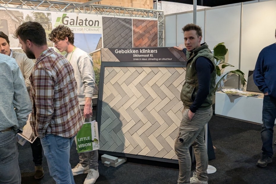 Bij de stand van Galaton presenteert Jaap Woestenburg een nieuwe kleur van de dikformaat XL klinker, uniek in kleur, formaat en structuur.