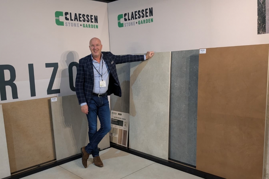 Bij Claessen stone+garden vinden we Cor van Beusekom. Claessen staat op de beurs met hun nieuwe robuuste keramische visgraattegel. Tevens leveren ze sierbestrating, natuursteen, graszoden en aanvullende tuinoplossingen voor professionals, waarbij ze zich laten voorstaan op een zeer hoog serviceniveau.