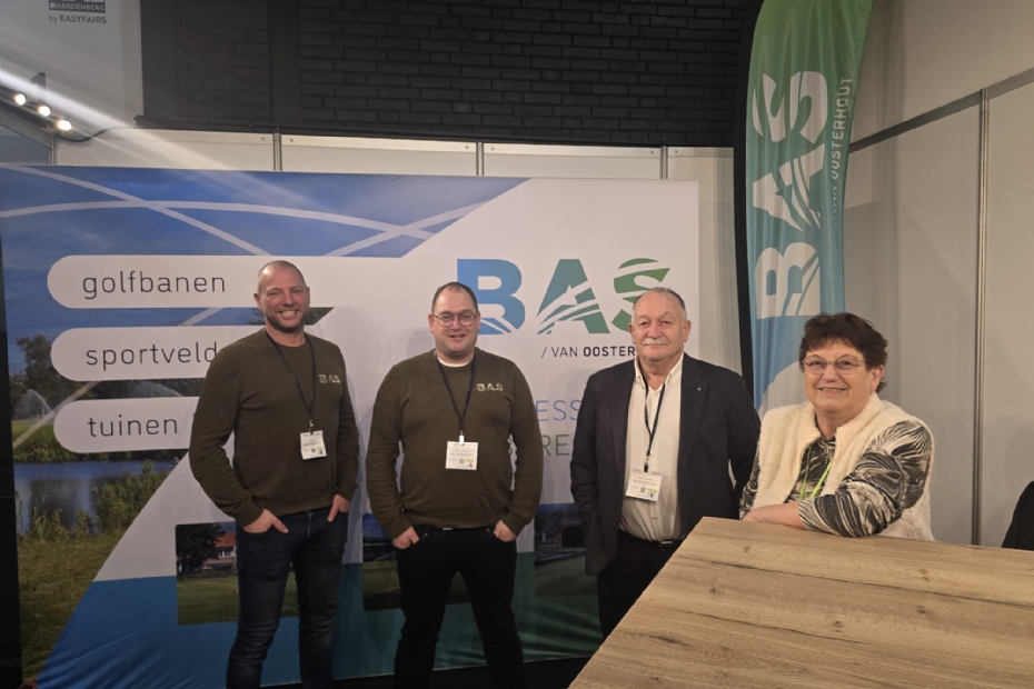 Barry Evers, Ronnie van Oosterhout, Bas van Oosterhout en Lucy van Oosterhout van Bas Beregening. Het is een familiebedrijf met passie voor water- en beregeningstechniek. Trend is waterbesparende maatregelen, door meer sproeiers te plaatsen en op de millimeter te beregenen.