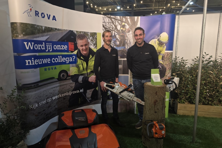 Jesper de Vries en Erwin Hutten van ROVA zijn op de beurs vooral om nieuwe collega's en medewerkers te werven en om iedereen te informeren dat Rova steeds meer in de buitenruimte actief is, naast afvalverwerking.
