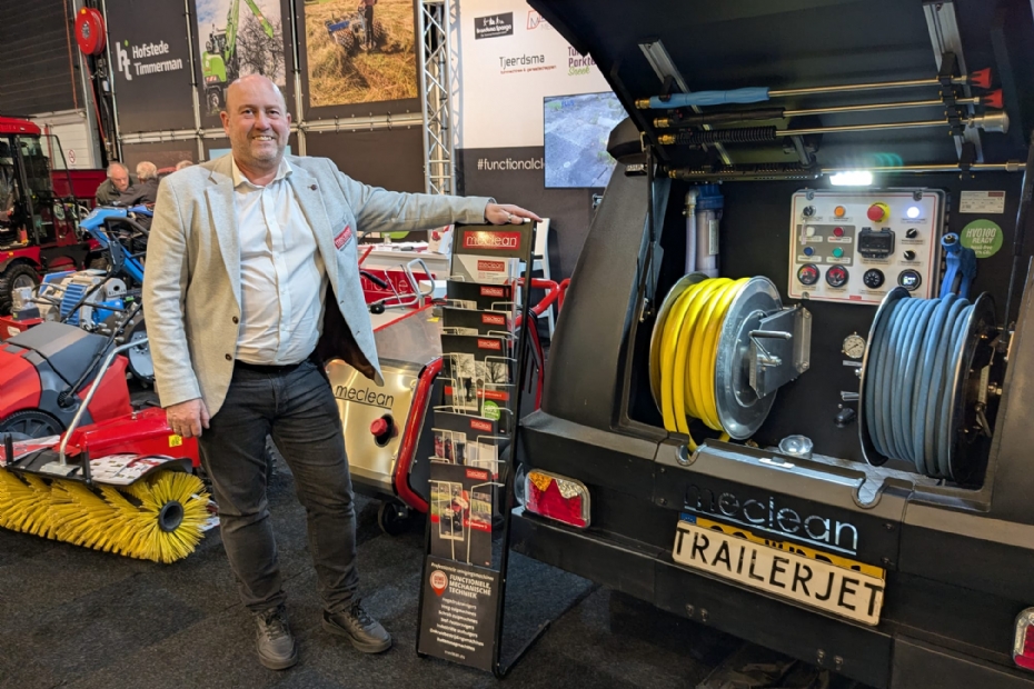 Ronald Kalmeijer van MeClean heeft het druk. 'De bezoekers zijn kwalitatief goed en ik heb al een aantal aanvragen voor demo's binnen. Ik sta hier voor relatiebeheer en ons onze CFB+ machine te tonen. Deze warmwateronkruidmachine is erg milieuvriendelijk. Daarnaast staat op de stand de Jet opgesteld. Deze trailer wordt aangedreven door een lithiumbatterij en vermindert de uitstoot met 99%. Gemeenten eisen dat steeds meer en ik denk dat dit de toekomst wordt. Deze machine werkt op fossielvrije brandstof en is daar uniek in.'