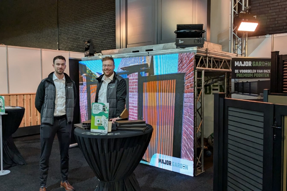 Niels Vanhauten stond bij Major Garden op de stand. Major Garden is een jong en vernieuwend bedrijf gespecialiseerd in poorten, schuttingen, vlonders en tuinverlichting. Ze ontwerpen en produceren eigen poorten.