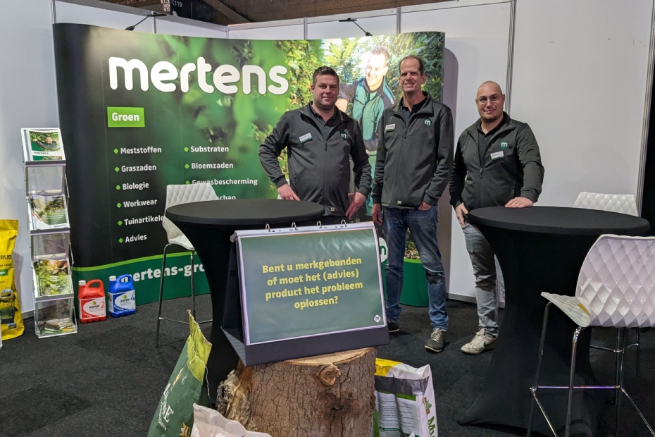 Patrick Janssen vonden we bij Mertens op de stand. Als bevlogen toeleverancier gelooft Mertens in een goede samenwerking naar gezonde groei van uw onderneming. Ze zijn thuis in de professionele tuinbouw, tuinretail en groensector en delen hun expertise met passie.