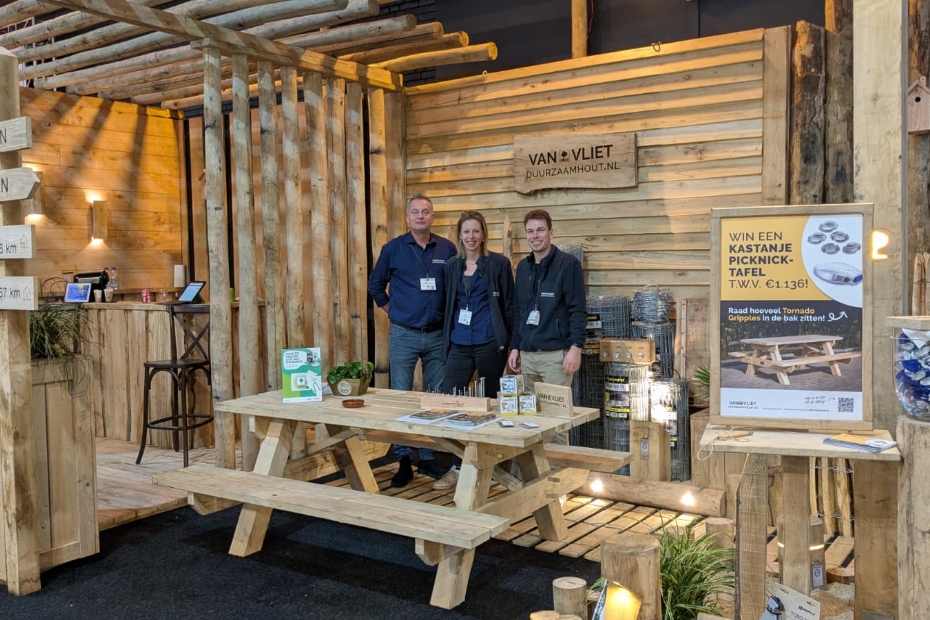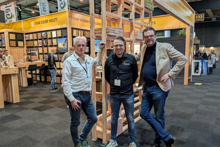 Van Vliet Duurzaamhout was met Leon Blom, Natasja Bos en Marcel Dorrestijn op de GSV. Hebben veel aanloop van veel relaties, wat logisch is, want ze staan bekend als de nummer één leverancier van duurzaam Europees hout.