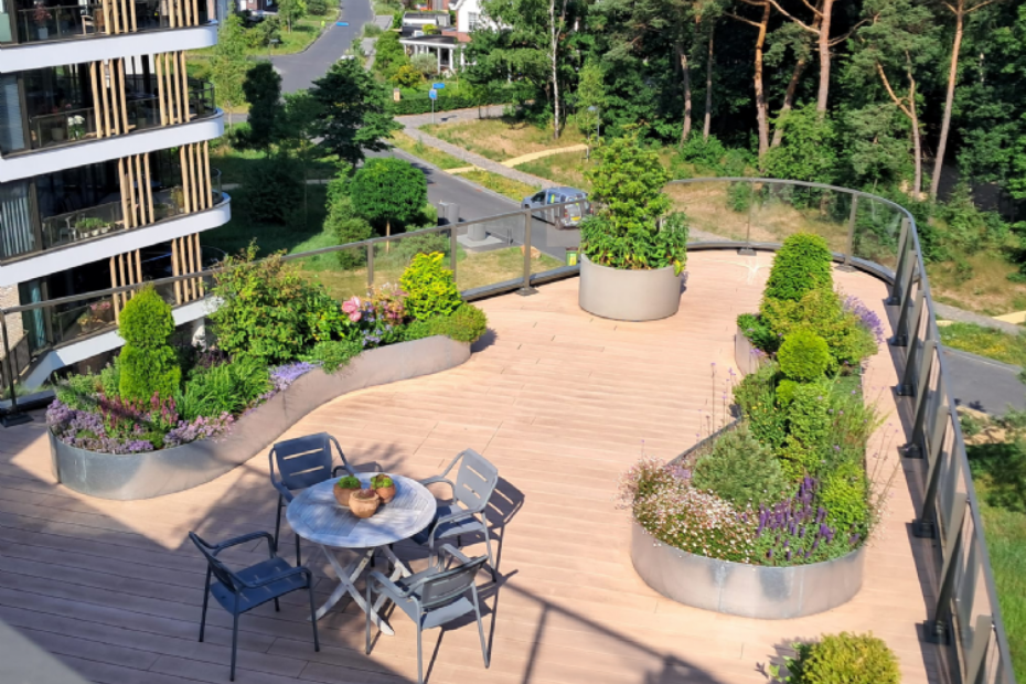 Straightcurve maakt ronde plantenbakken op dakterras mogelijk