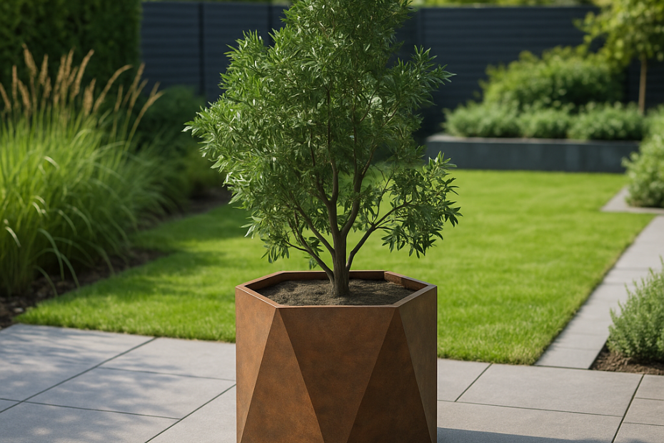 | | Plantenbakken voor dieptewerking, hier in cortenstalen uitvoering van Adezz |