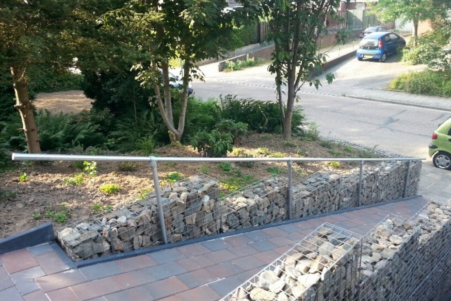 | | Bij hoogteverschillen kun je ook denken aan producten die niveauverschillen accentueren, begeleiden of veilig maken, zoals (trap)hekken of balustrades bij verhoogde terrassen, trappen, splitleveltuinen en verhoogde looproutes. Hier Traphek Piran van SteigerbuisOnline. |