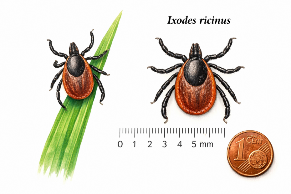 Een teek is niet erg groot (afbeelding gemaakt met AI)