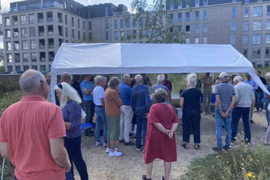 Het enthousiasme van de bewoners resulteerde in een speciaal voor hun georganiseerde ‘bewonersbijeenkomst’. Maar liefst 65 mensen namen hieraan deel. De groep werd opgesplitst in drieën voor een rondleiding door medewerkers van Ranox door hun eigen tuin. Het was enorm genieten. Niet alleen voor hun, maar ook voor ons. Kortom, een tuin van verbinding.