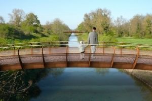 Samen met de architect Atelier Nervures en de aannemer Idverde agence de Bouchain zijn de details van de brug uitgekristalliseerd. Het FSC hardhout in combinatie met het roestige Corten staal geeft een warme indruk. Het wijd gebogen hekwerk creëert een brede toegang en een vriendelijke uitstraling. De brug is daardoor subtiel in het landschap aanwezig.