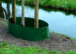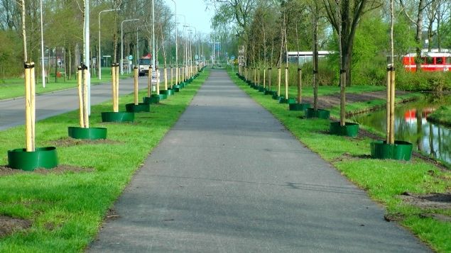 De Gemeente Dongeradeel heeft de gietranden voor het eerst in een project toegepast, waarbij de eis is gesteld dat de gietranden stevig moeten zijn. Dhr. Urff van de gemeentewerken heeft voor de RootBarrier Gietrand gekozen vanwege de snelle plaatsing en de stevigheid van de gietrand. De meeste gietranden blijken na verloop van tijd veel te slap te zijn en beschadigen bij het maaien en watergeven te makkelijk. De gietranden van RootBarrier zijn voorzien van een connector, grondanker en een afdekkapje. Dit maakt de gehele constructie zeer solide. Het materiaal HDPE is 10 jaar lang UV bestendig en daarmee gaan deze gietranden meerdere cycli mee. Na 2 jaar worden de gietranden bij deze bomen verwijderd en kunnen opnieuw gebruikt worden!