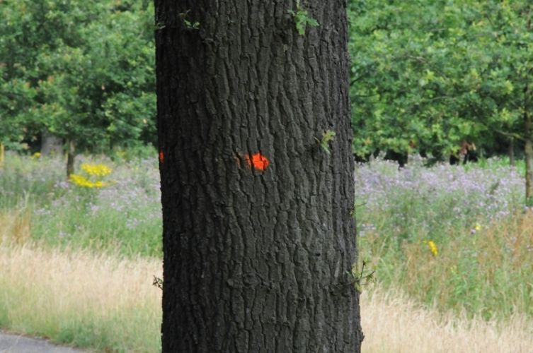 11) Sommige van de 22 bomen hadden al veel eerder gekapt moeten worden. Deze eik is al geruime tijd dood.