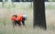 4) Met de klem worden de bomen gecontroleerd op de weg gelegd