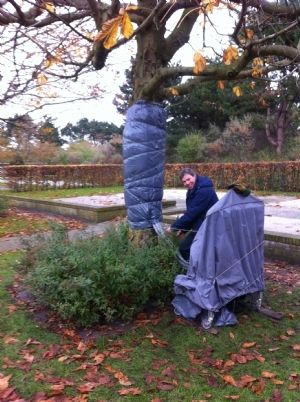 Een jaar geleden hield André van Lammeren een lezing over dit onderwerp op de Boom Innovatie Dag bij Boomkwekerij Udenhout. Wageningen Universiteit had al enkele onderzoeken achter de rug met het verwarmen van de stam van kastanjes met warm water in slangen gedurende drie dagen, waarna de bacterie sterft. Dankzij een speciale verpakking rond de stam blijft de warmte op een constante temperatuur.